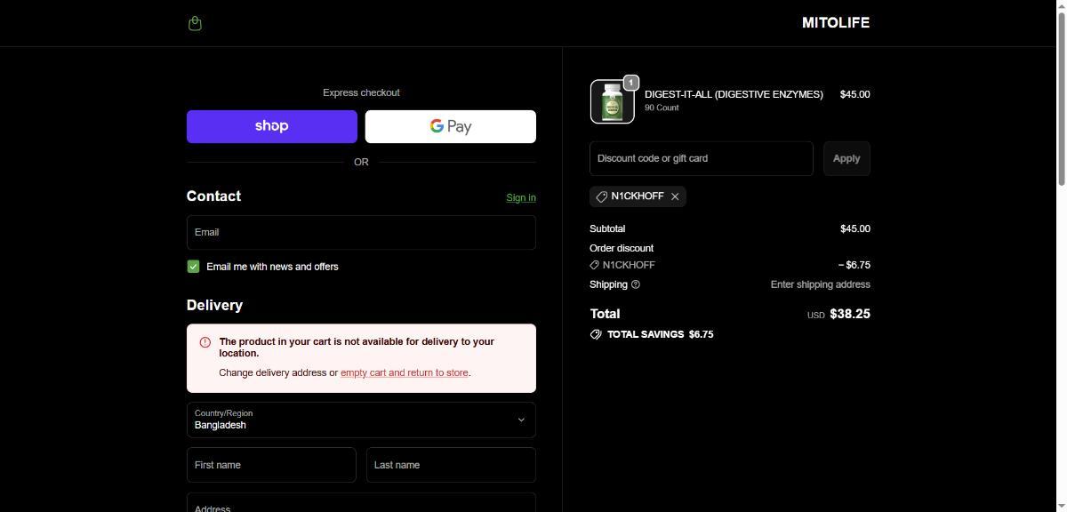 Use promo code: N1CKHOFF at checkout to get 15% off your order on MitoLife.