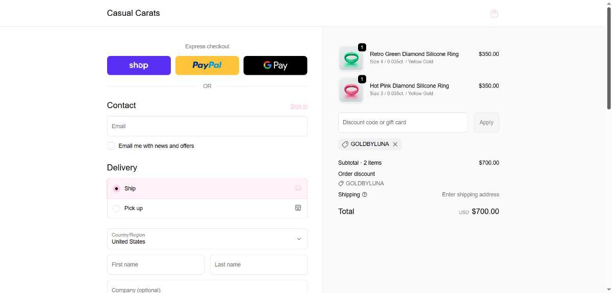 Save 20% on your Casual Carats order with coupon GOLDBYLUNA.