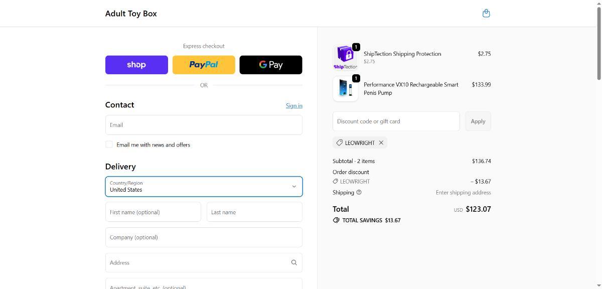 Use promo code: LEOWRIGHT at checkout to get 30% off your order on Adult Toy Box.