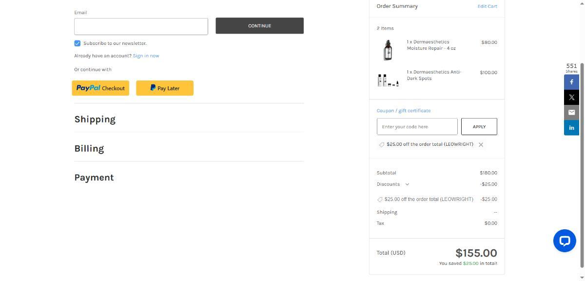 Apply code LEOWRIGHT on Skin Beauty and get 40% off instantly.