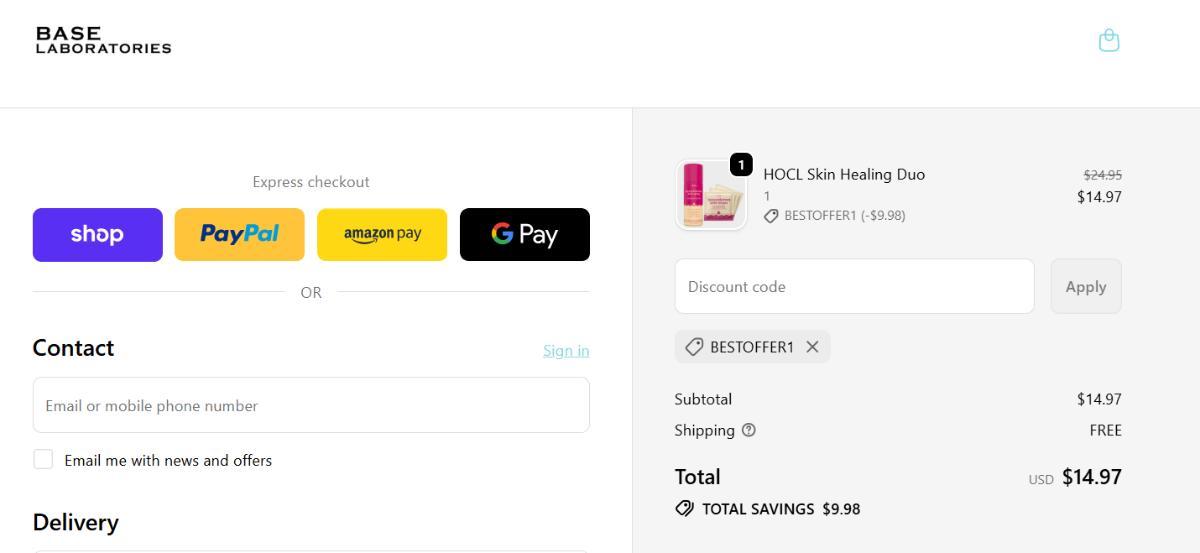 Apply code BESTOFFER1 on Base Laboratories and get 40% off instantly.