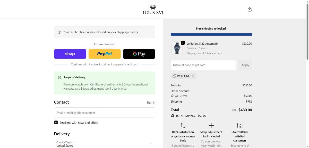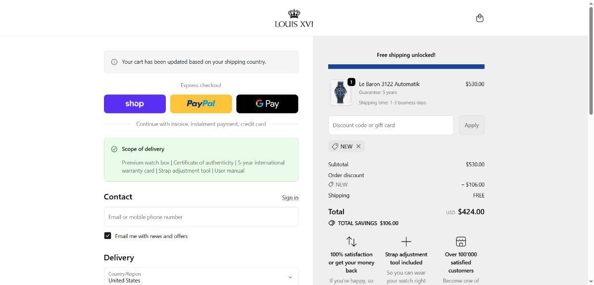 $50 OFF + Free Shipping All Orders on LOUIS XVI Watches