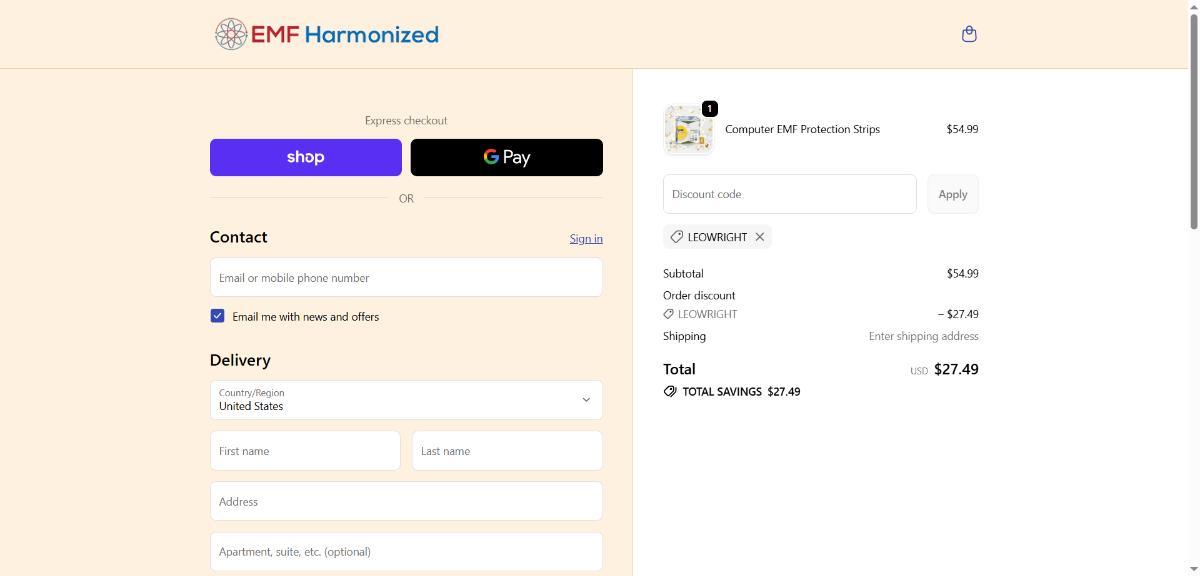 Shop EMF Harmonized now and save 50% with coupon code LEOWRIGHT.
