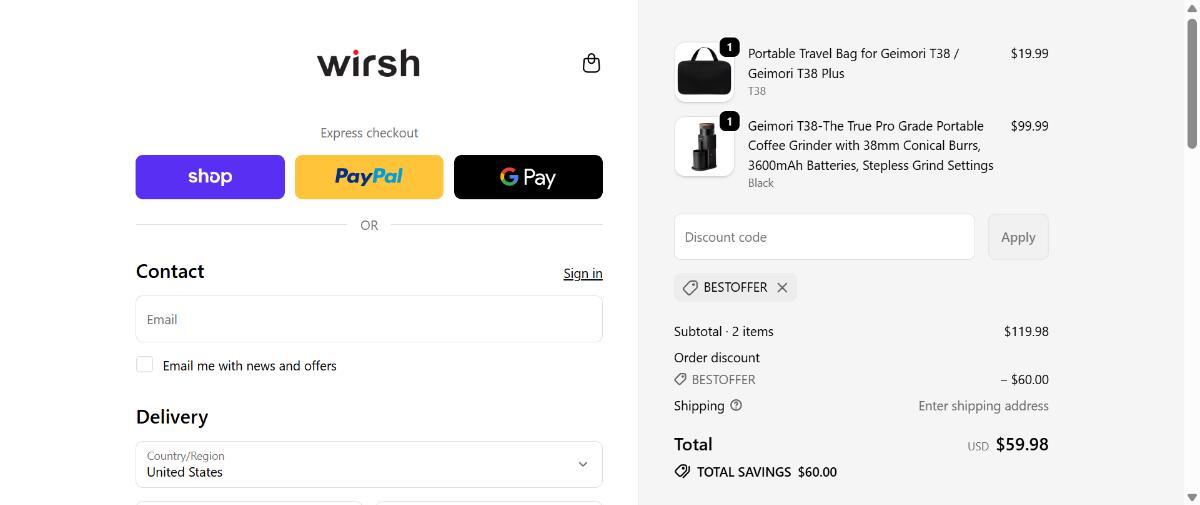 Claim $60 discount at Wirsh — enter code BESTOFFER at checkout.
