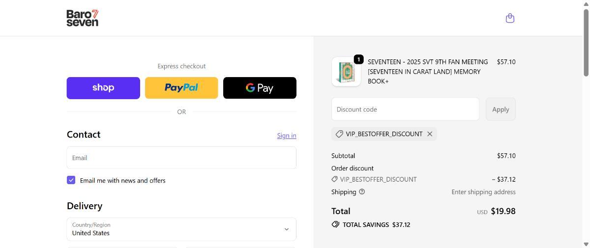 Apply the code VIP_BESTOFFER_DISCOUNT on Baro7 and get an instant 65% off.