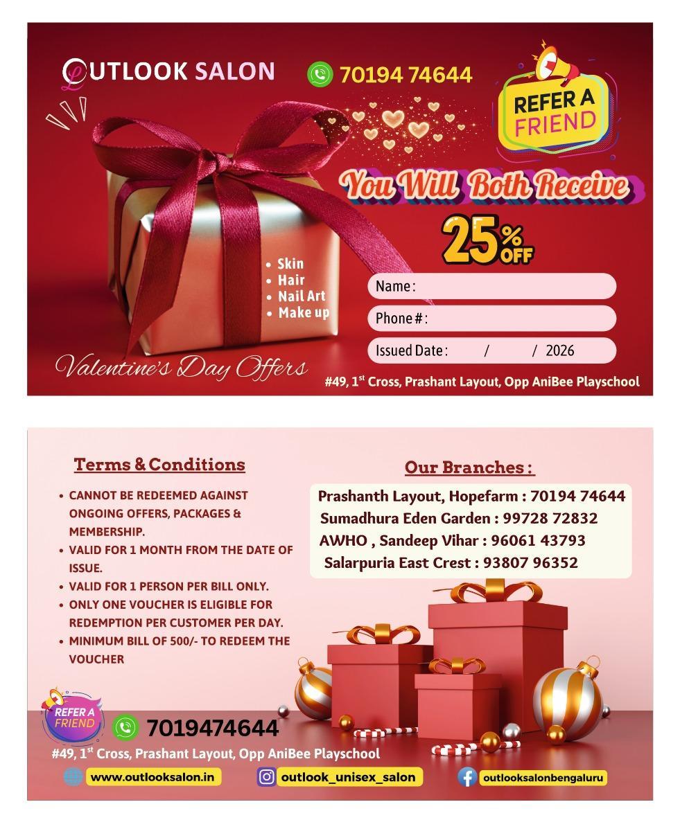 "Welcome to Outlook Uni*** Salon & Nail Art - AWHO, Sandeep Vihar, a top-rated beauty destination located in the heart of Bengaluru. Our salon offers a wide range of services for both men and women, including haircuts, hair styling, coloring, and specialized treatments like keratin and nanoplastia. With expert beauty treatments such as facials, makeup, waxing, and nail art, we are the ultimate beauty parlour and salon near you. Conveniently located near Assetz Marq Whitefield and Sandeep Vihar shopping Complex, we offer bridal packages and home service options. Discover the best uni*** salon in town for a flawless you!"