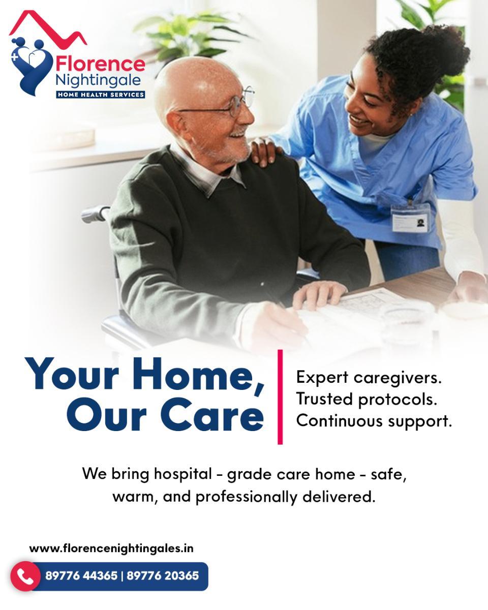 Florence Nightingales is trusted for delivering the best home nursing services in Hyderabad, offering compassionate care for elders and patients. Our trained nurses specialize in elderly support, post-surgery recovery, and chronic illness management. With a focus on safety and comfort, we bring hospital-quality healthcare directly to your home. Families choose us for professional care that ensures recovery, dignity, and peace of mind for their loved ones.