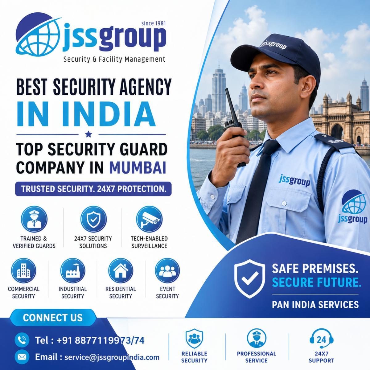 Secure your assets with the best security agency in India, providing world-class protection tailored to your needs. As a leading security company in Mumbai, JSS Group offers comprehensive security services in Mumbai, including elite manned guarding, corporate security, and industrial protection. Whether you are looking for a reliable security guard company in Mumbai or a professional security guard agency in Mumbai to safeguard your premises, our highly trained personnel ensure 24/7 vigilance and peace of mind. We combine advanced technology with expert manpower to deliver the best security services agency in Mumbai. Trust our proven track record of excellence to protect your business, residential complexes, and events with unmatched professionalism and integrity. Contact us today to hire the most trusted security experts in the region.