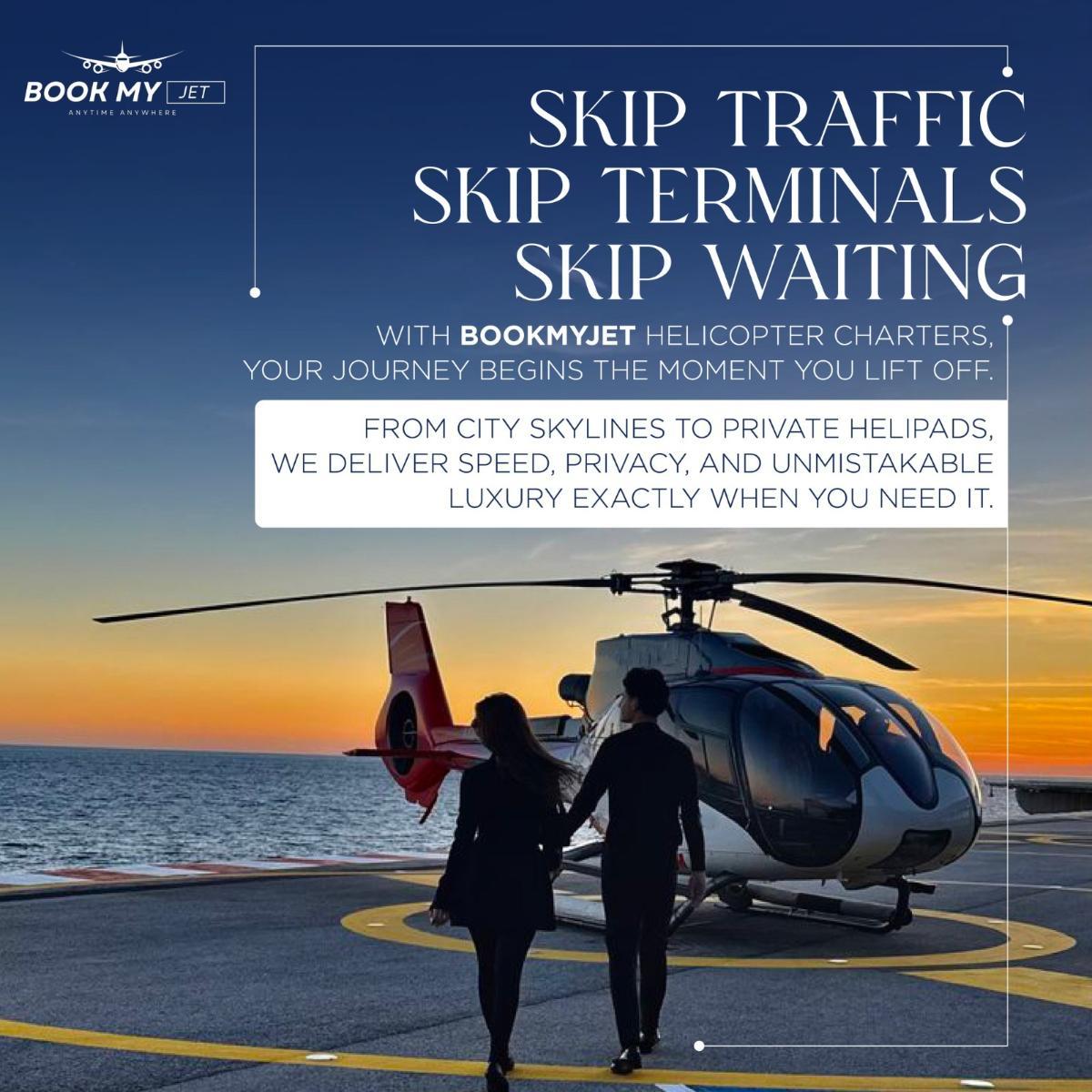 Experience luxury and convenience with helicopter charter rental services by BookMyJet. Enjoy fast, flexible, and personalized air travel for business trips, special events, pilgrimages, or sightseeing. Choose from a wide range of aircraft and get instant quotes for seamless booking.