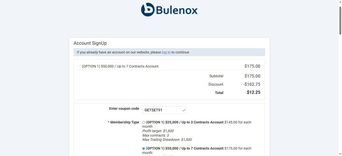 #Bulenox, #Coupon, #Promo, #Discount, #Code, #OPTION 1, #OPTION 2, #Evaluation, #Account