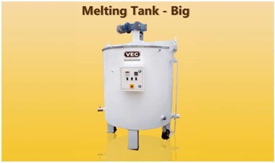 VEC Chocolate melting tanks are specifically designed to melt blocks of chocolate, fat, cocoa mass and cocoa Butter. Melting tanks are standing, twin shells and isolated cylindrical vessels with an agitator, in a built heating system, ensuring keeping a temperature of chocolate mass.