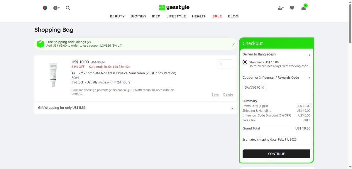 Enjoy 5% additional savings on your YesStyle order when you apply code SAVING10 at checkout.