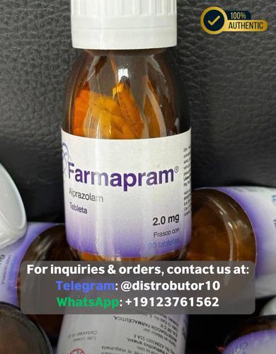 Farmapram Alprazolam 2mg (100 Tablets) – Authentic product available with US delivery. This medication is commonly used for anxiety and panic disorders. Each bottle contains 100 tablets (2mg) and is properly packaged to ensure quality and safety.