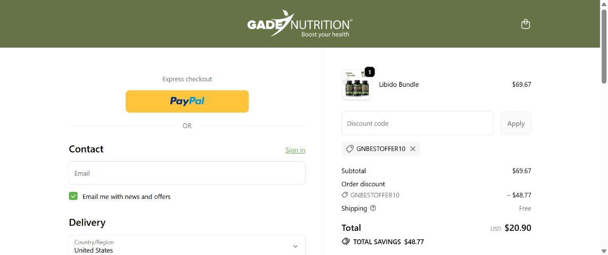 Enjoy 70% OFF + Free Shipping on Gade Nutrition Use Code: GNBESTOFFER10.