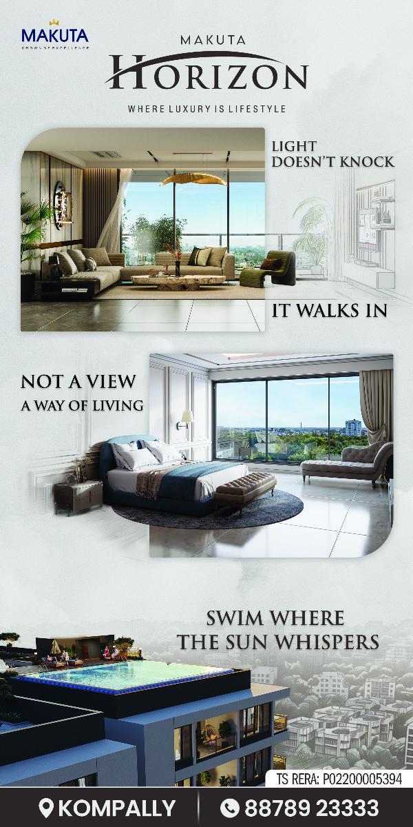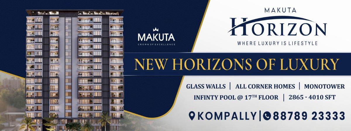 Makuta Horizon presents premium 3 & 4 BHK apartments for sale in Kompally, designed with elegant glass walls, a stunning 180-ft infinity pool, and world-class amenities. Nestled in one of the best gated communities in Kompally, North Hyderabad, it offers the perfect blend of luxury, comfort, and serenity. With seamless connectivity to key destinations, these luxury gated community apartments in Kompally are ideal for homebuyers and investors seeking a modern, high-quality lifestyle.
