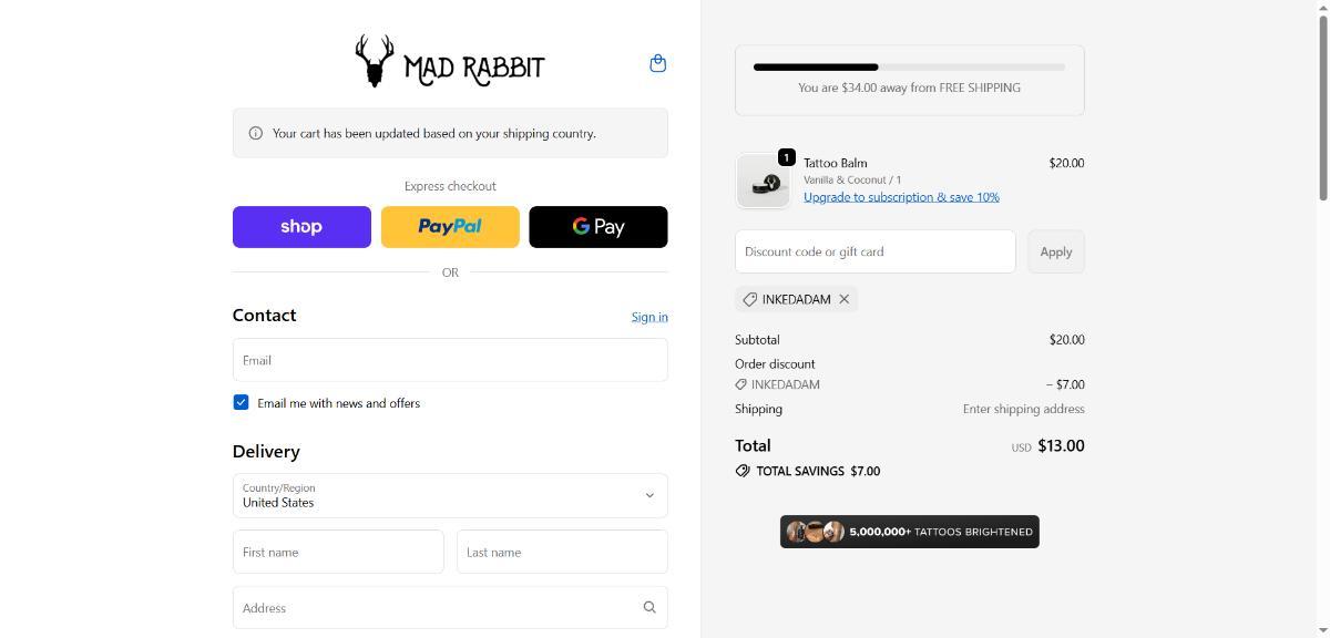 Enjoy 35% off sitewide at Mad Rabbit with this coupon code: INKEDADAM at checkout! Free shipping on orders of $50.
