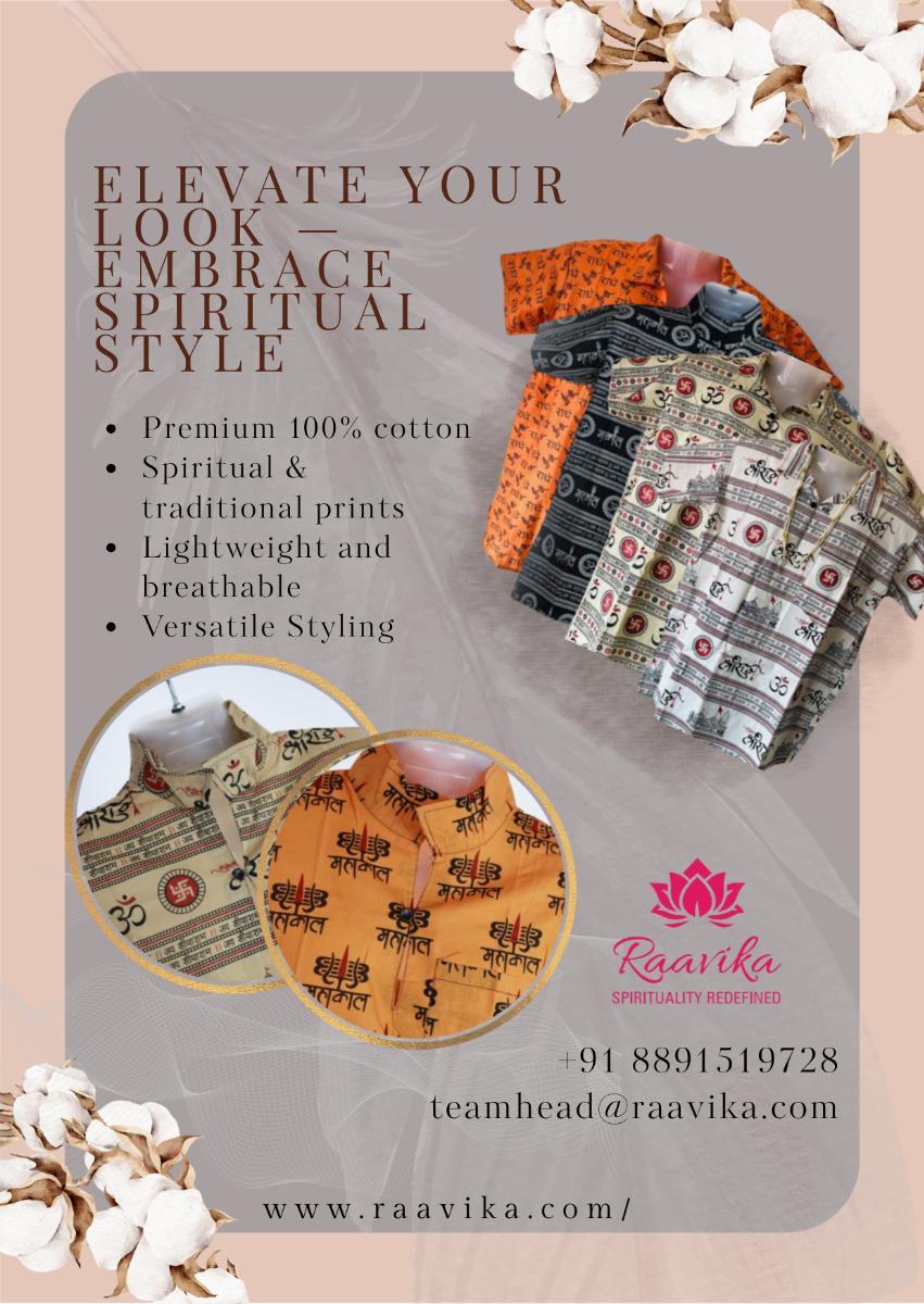 Raavika brings tradition and style together with a stunning range of ethnic and spiritual collections. Discover elegant sarees from our Banarasi saree online shop in Kochi, stylish spiritual printed cotton kurtas for men, and beautiful handcrafted bags available for online shopping. Each product is made with care, celebrating Indian craftsmanship, culture, and authenticity, perfect for gifting or adding a touch of tradition to your everyday look.