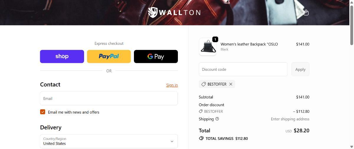 Enjoy an exclusive 80% discount at Wallton. Apply code BESTOFFER at checkout!