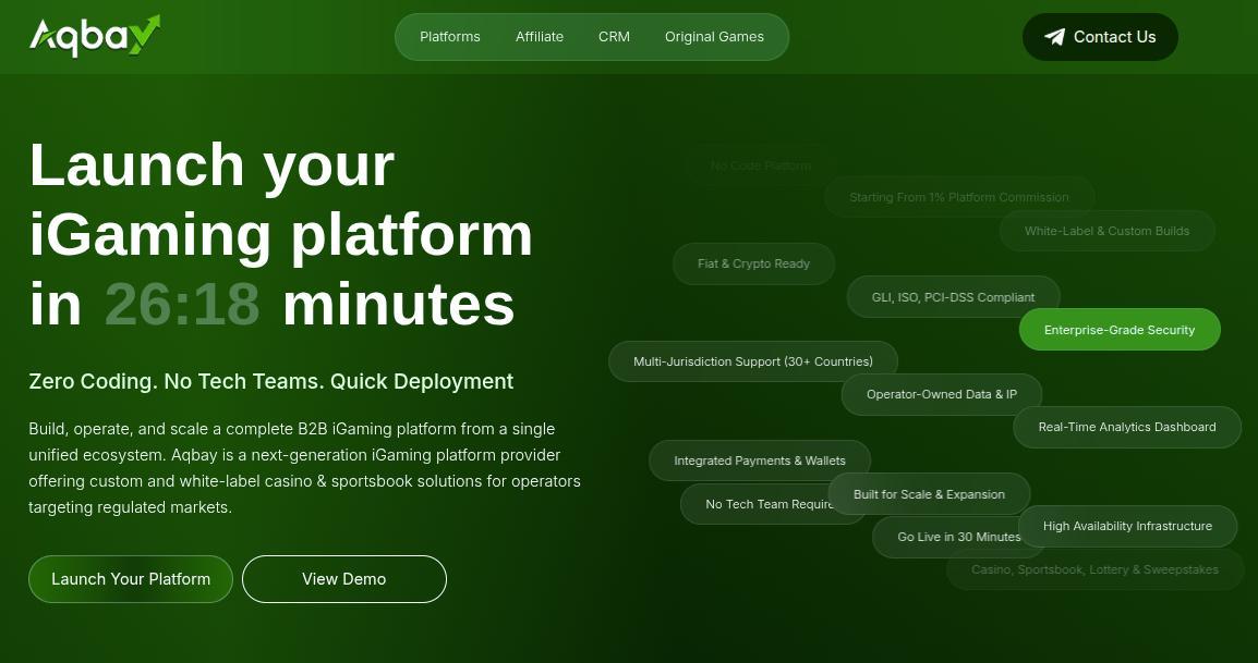 Launch your iGaming platform in just 30 minutes with Aqbay’s White Label iGaming Software for Gaming Operators. Aqbay provides complete iGaming solutions designed for startups and established operators looking to enter the online gaming market quickly and efficiently. Get access to customizable casino platforms, original casino games, sportsbook integration, payment solutions, RTP controls, brand-level customization, and performance optimization- all in one powerful package.