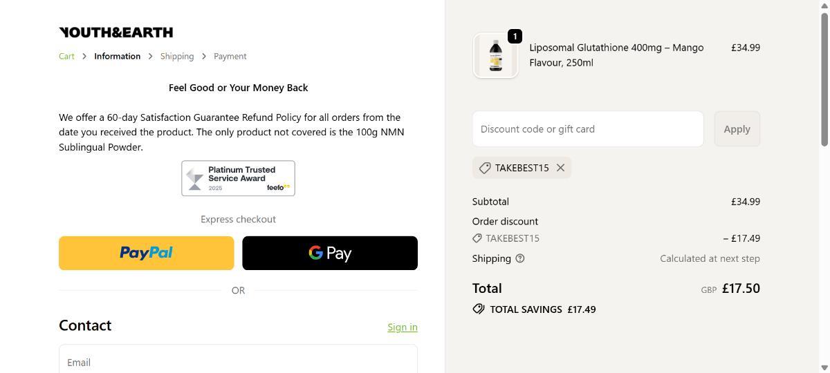 Get 50% off your Youth & Earth purchase-use code TAKEBEST15 at checkout.