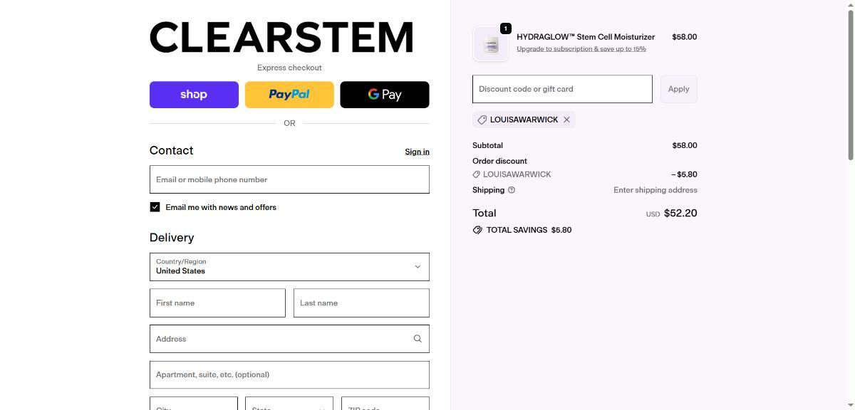 Take 15% off your CLEARSTEM order using code LOUISAWARWICK.
