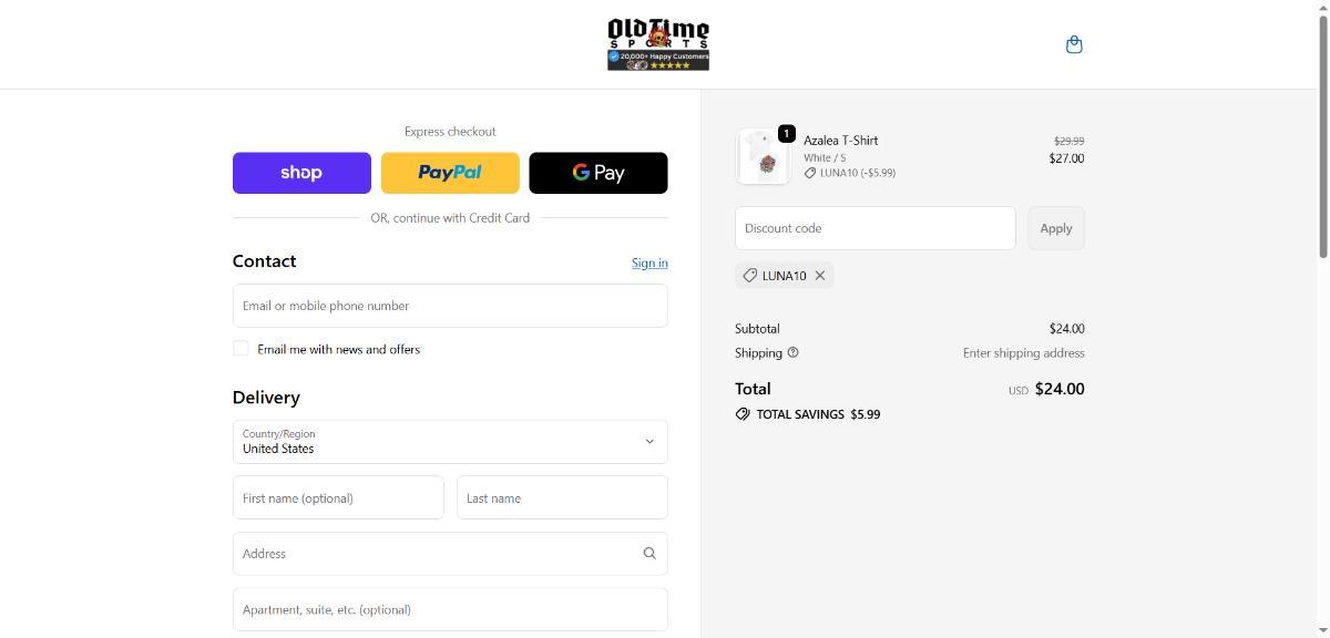 Enjoy 20% savings at Old Time Sports using code LUNA10.