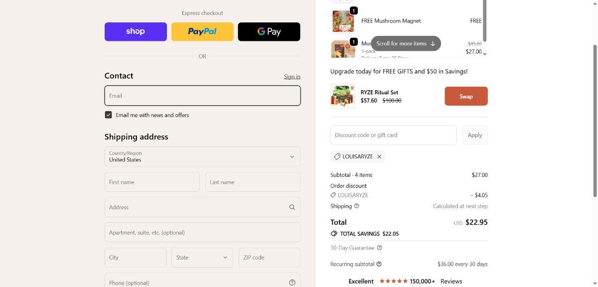 Apply code LOUISARYZE on Ryze and get 20% off plus free gift instantly.