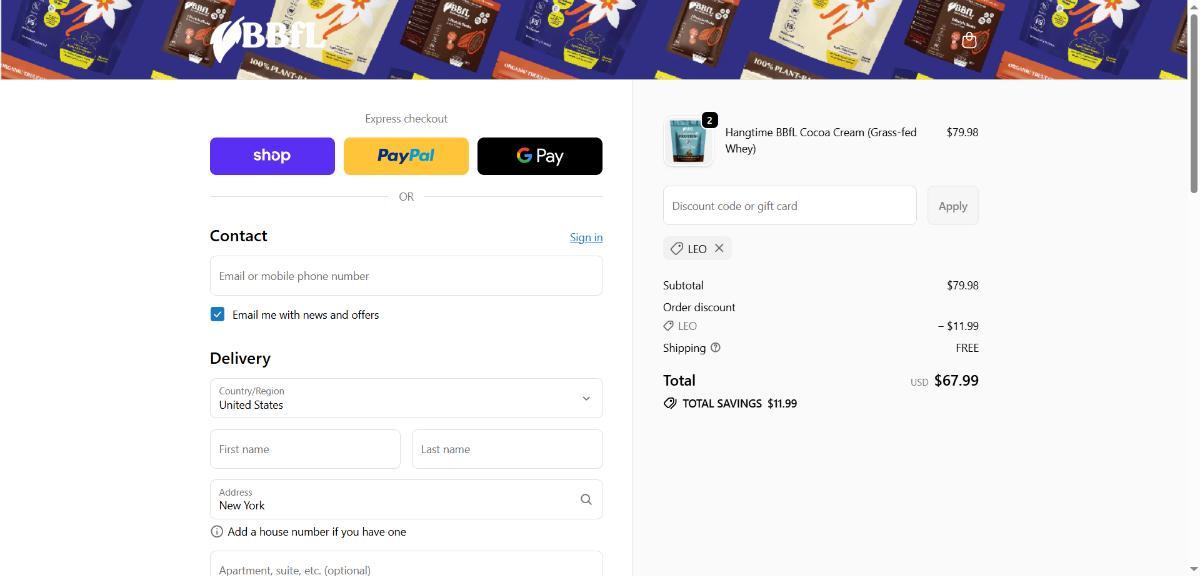 Apply code LEO on Best Bodies for Life and get 20% off instantly.