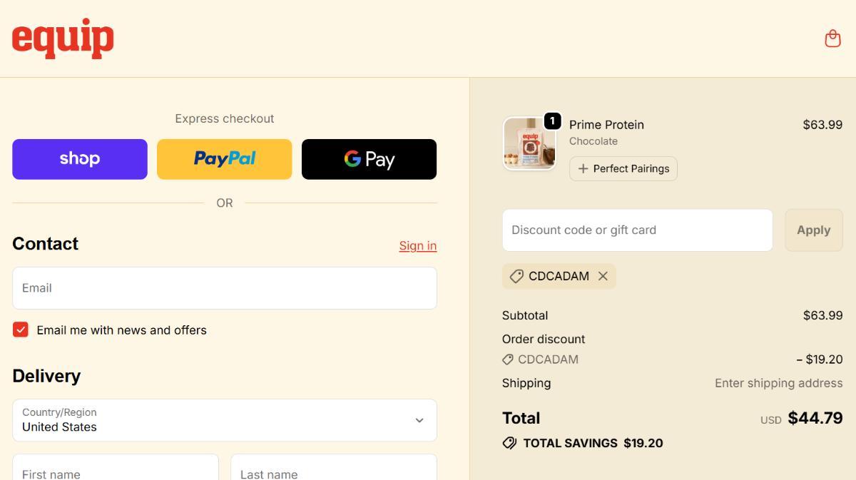 Shop Equip Foods now and get 30% off all items with the coupon code CDCADAM at checkout.