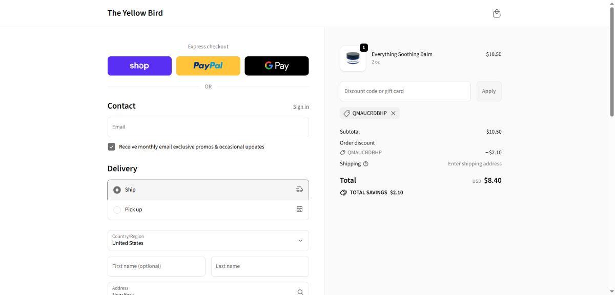 Apply code QMAUCRDBHP on The Yellow Bird and get 30% off instantly.