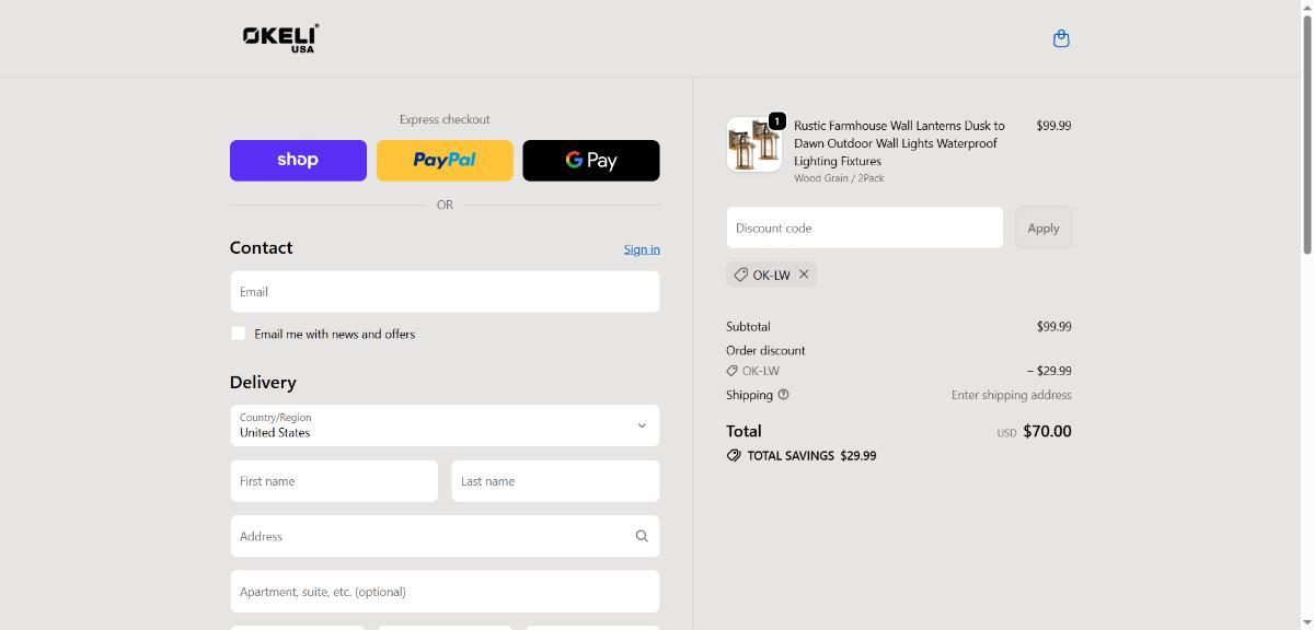 Enjoy 30% savings at Okeli Lights using code OK-LW.