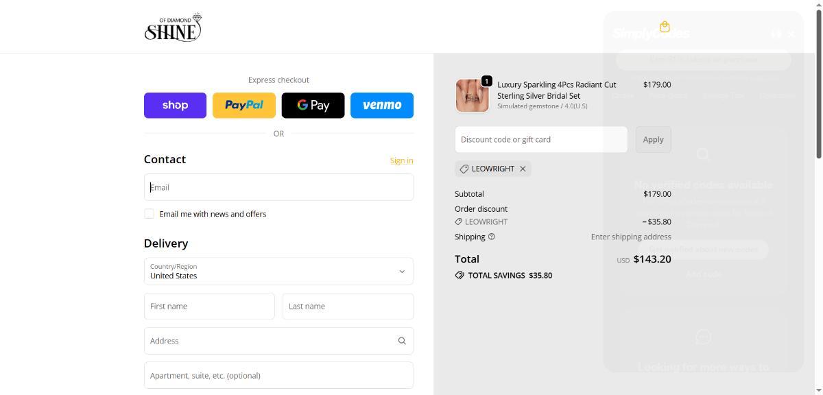 Enjoy 40% savings at Shine of Diamond using code LEOWRIGHT.