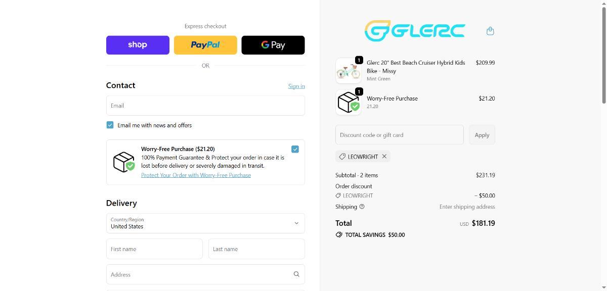 $50 OFF Your Order + Free Shipping on GLERC BIKES