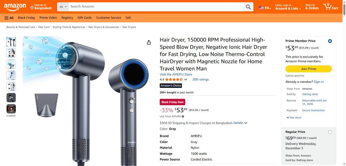 Get 66% OFF Ameifu Negative Ionic Hair Dryer from Amazon. Original price: $79.99, the discount price with the code: $27.19. Use coupon code: ASC45LT3 at checkout.
