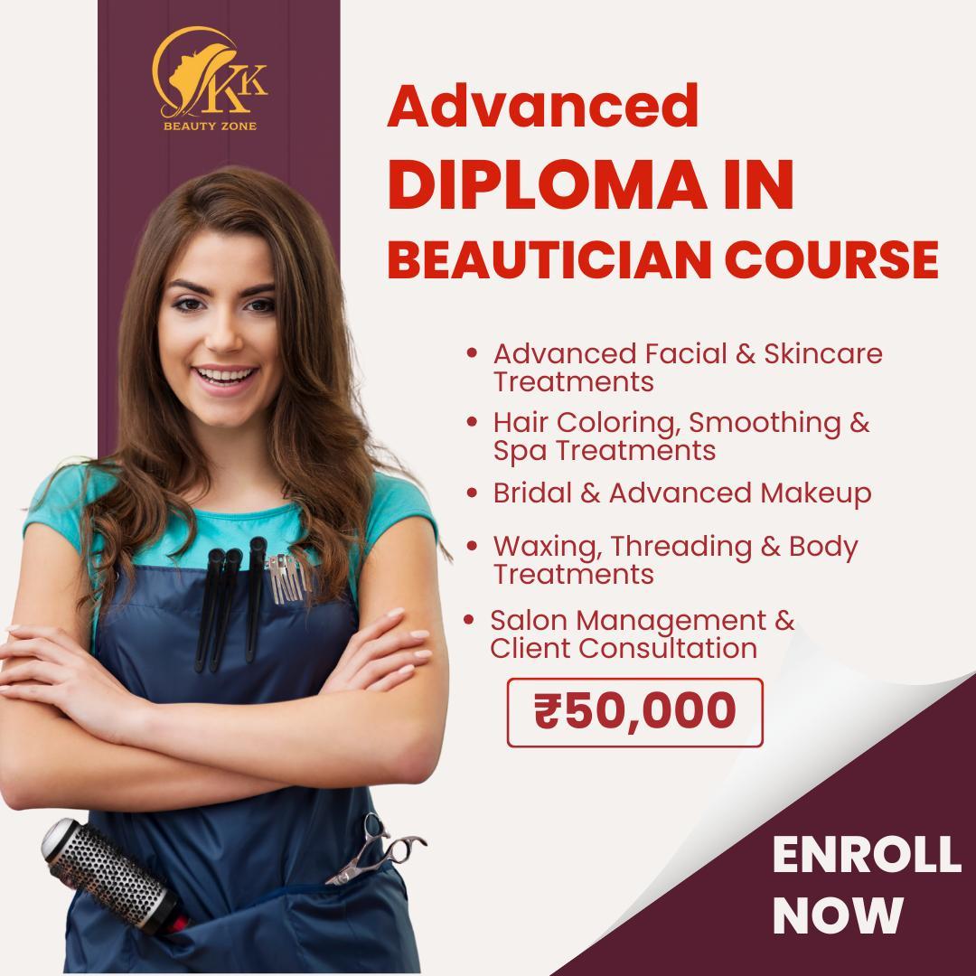 Turn your passion for beauty into a professional career with KK Beauty Zone! Our Diploma in Beautician Course in Chandigarh offers comprehensive training in: