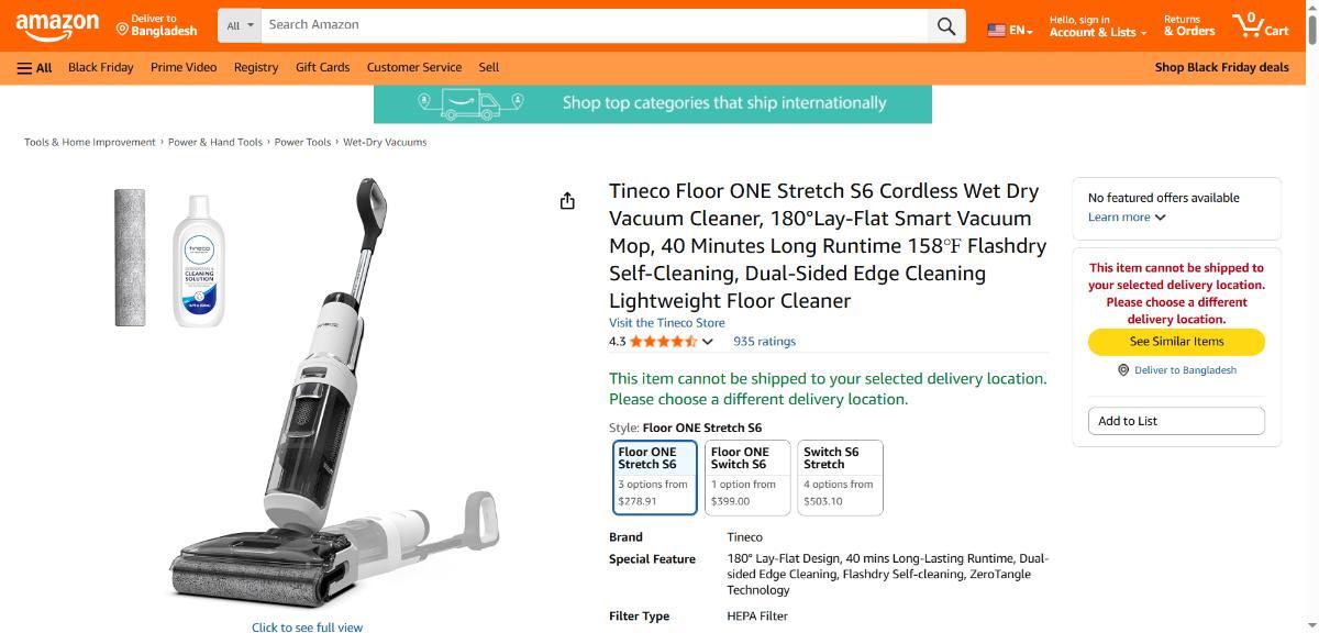 Amazon has 60% OFF for The Black Week on The Tineco Stretch S6 Original price: 278.91, the discount price with the code: 111.56. Use coupon code: BFTCS601 at the checkout.