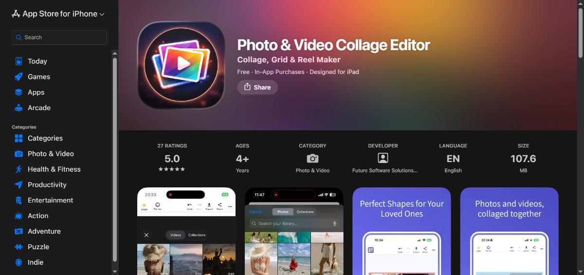 Apple AppStore: 66% OFF Photo & Video Collage Editor on iOS