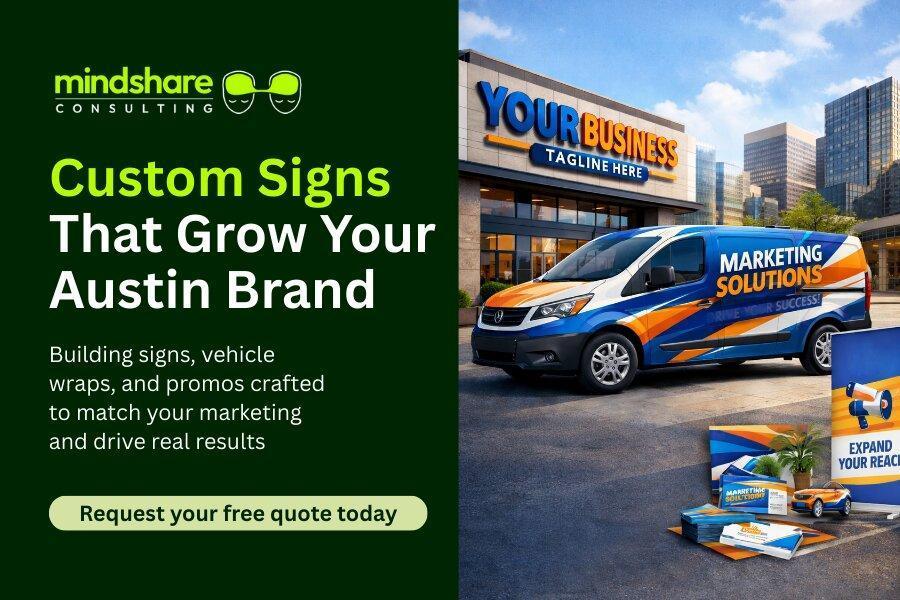 We go beyond simple printing; we craft visually compelling signs including building signs, illuminated signs, vehicle wraps, and promotional materials that are meticulously designed to align with your overall brand and marketing goals. As the signage arm of a leading marketing agency, we combine creative design, advanced printing technology, and strategic insight to deliver signs that don't just look good, but drive business results. Whether you need an eye-catching lobby sign or an entire fleet of vehicles wrapped, Austin Sign Masters, Mindshare Consulting, and Lakeside Signs & Graphics offer end-to-end service, delivering innovative, durable, and effective signs for the competitive Austin market. Visit us at: www.austinsignmasters.com