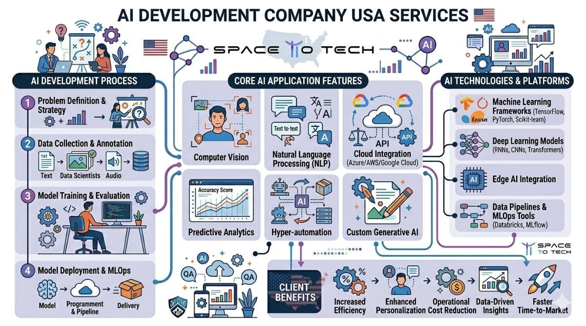 Transform your business with intelligent solutions from Space To Tech, a trusted ai development company usa. We specialize in building smart AI applications that automate processes, enhance decision-making, and improve overall efficiency.