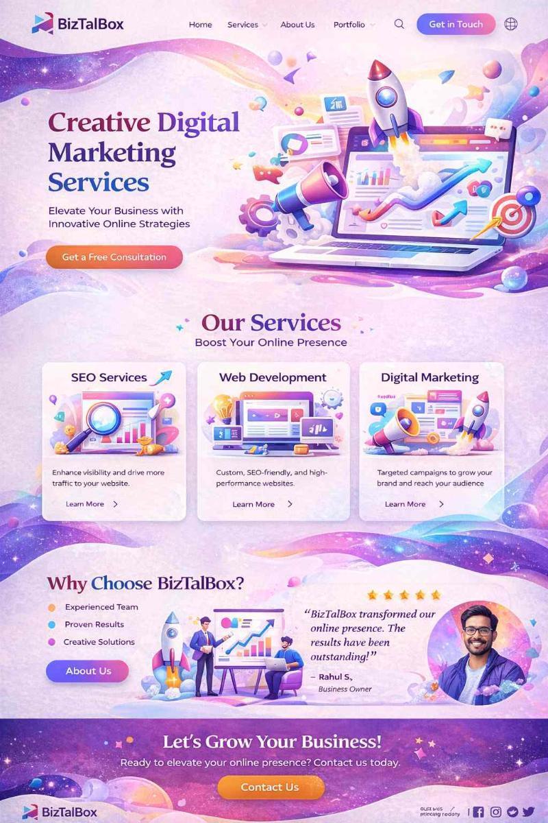 Biztalbox is a full-service digital marketing and creative agency that helps businesses strengthen their online presence through smart strategies and innovative execution. From startups to established brands, the agency focuses on delivering measurable growth, improved visibility, and higher conversions.