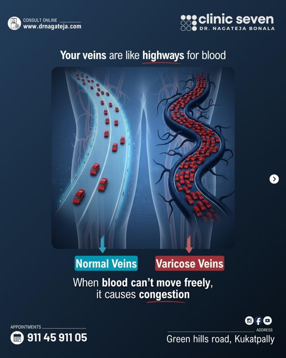 and pain management treatments at Clinic Seven, Kukatpally. Specialised in varicose veins