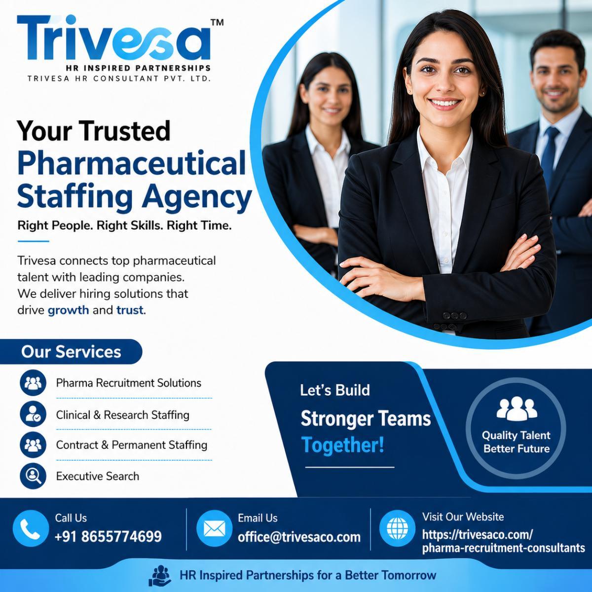 In the middle of your recruitment journey, trivesa provides trusted and result-driven solutions. The company specializes in pharmaceutical recruitment services and focuses on quality hiring. Furthermore, trivesa uses advanced screening methods and industry knowledge. Therefore, employers receive skilled candidates who are ready to perform. Whether it is drug industry hiring or clinical staffing, the process becomes simple and efficient.