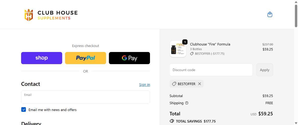 Apply code BESTOFFER at Clubhouse Supplements and get up to 75% off plus free shipping instantly.