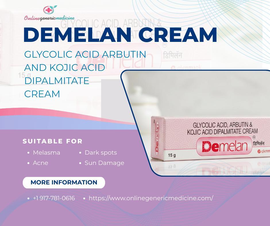 Buy Demelan Cream 20gm online and reduce pigmentation. A batch of 4 tubes, now available at just $42. Hurry now!