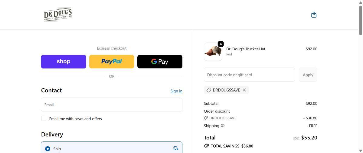Claim 40% off + Free Shipping at Dr. Doug’s-enter code DRDOUGSSAVE at checkout.