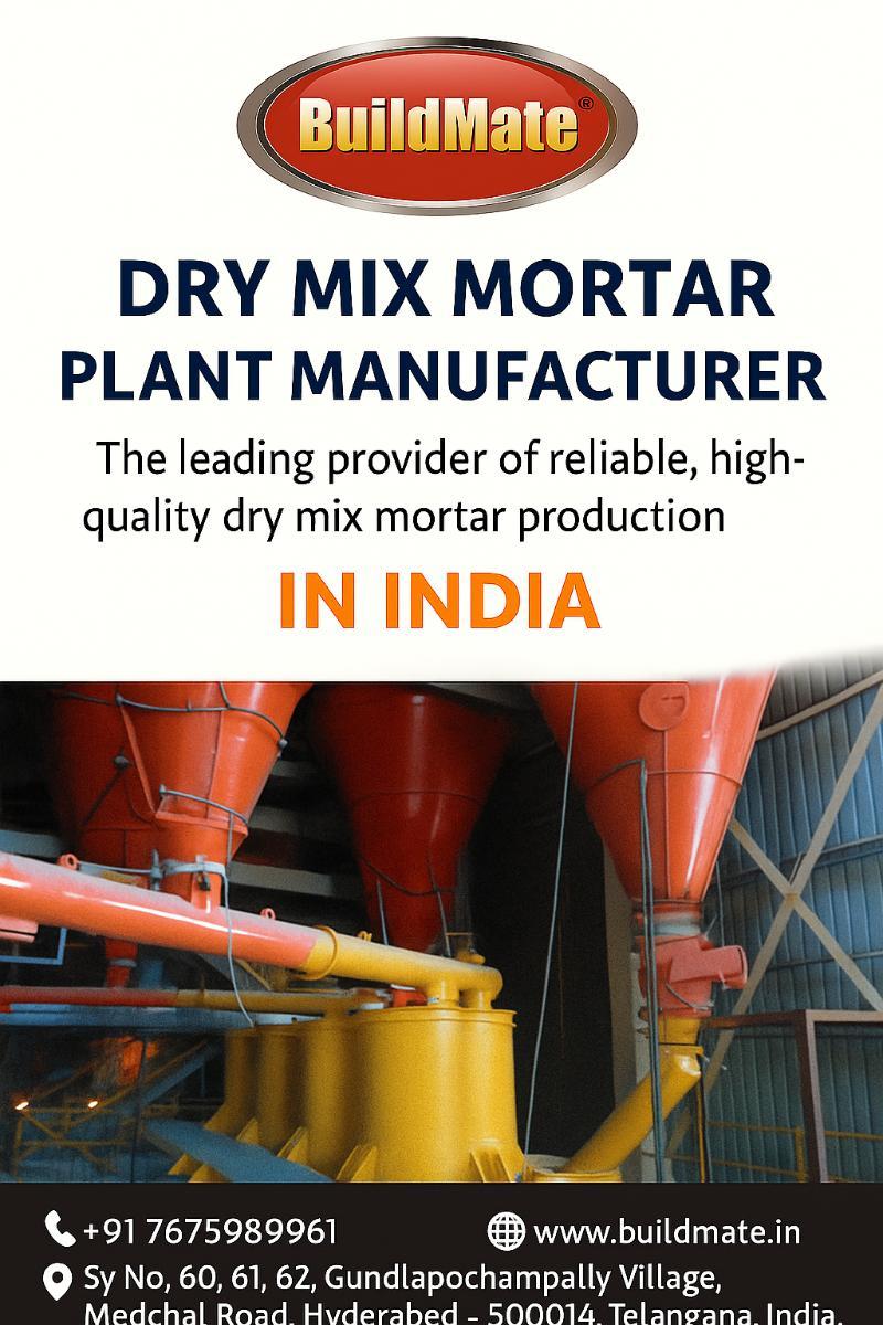 BuildMate offers advanced dry mix mortar manufacturing plants in Hyderabad, engineered for efficiency, durability, and consistent quality. Our plants support a wide range of mortar products, enabling faster construction, reduced waste, and eco-friendly operations—ideal for meeting the demands of modern building projects.