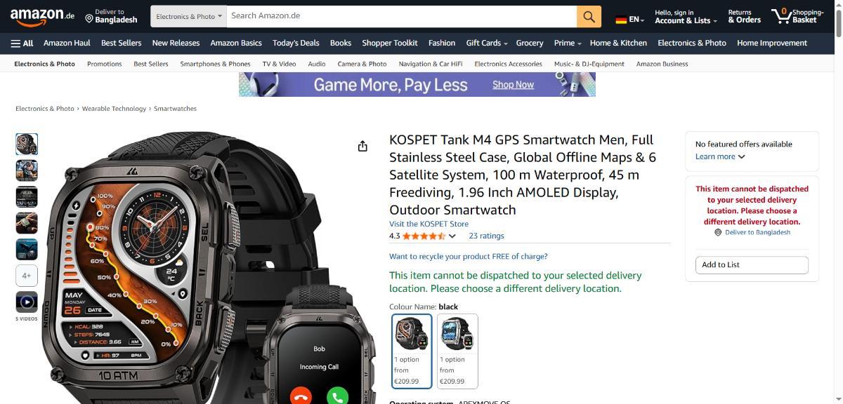 Amazon is offering €25 OFF the KOSPET TANK M4 Smartwatch. Enjoy premium design and smart performance for only €184.99 instead of €209.99. Limited-time savings from KOSPET.