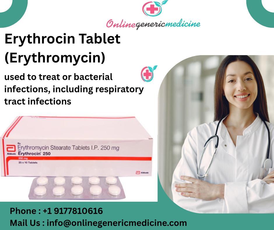 Erythrocin (erythromycin) is a widely used antibiotic for treating bacterial infections. Learn about erythromycin dosage, recommended erythromycin antibiotic dosage, benefits, and possible erythromycin side effects. Ery Tab offers effective relief when used as prescribed by healthcare professionals. For More Information, visit https://www.onlinegenericmedicine.com/erythrocin-tablet-erythromycin