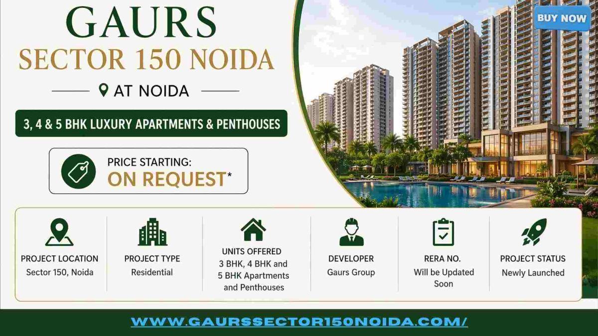 Discover [**Gaurs Sector 150 Noida**][1], a premium residential development featuring spacious 3, 4 & 5 BHK homes and penthouses. Designed with modern architecture and open green landscapes, the project emphasizes comfort, privacy, and urban convenience in a fast-developing corridor.