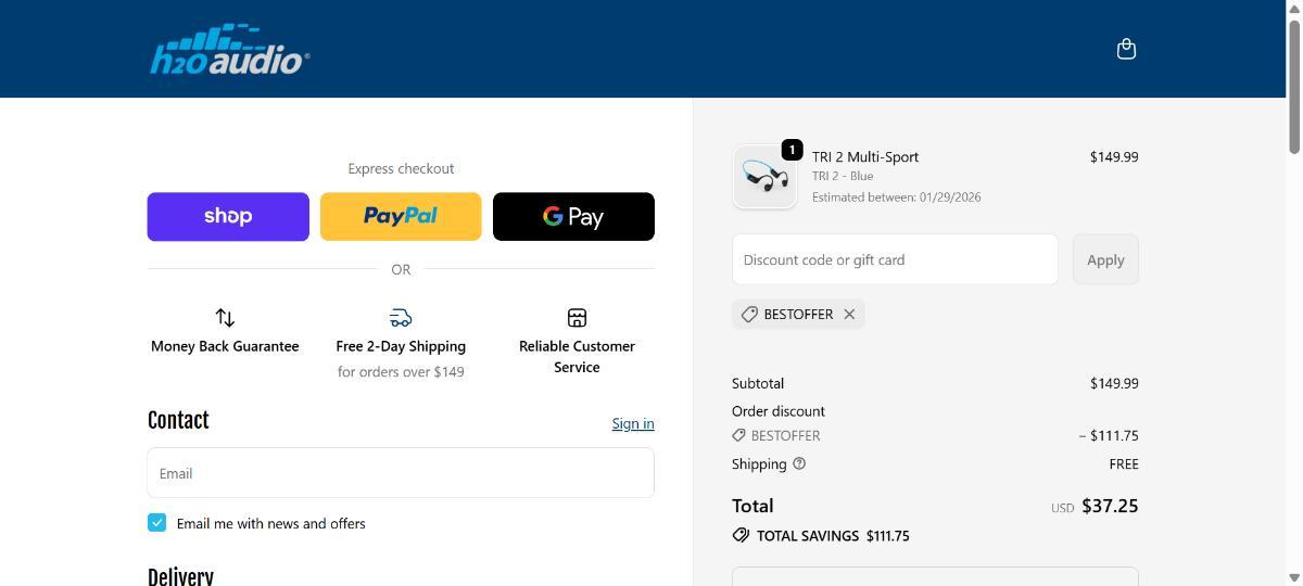 Claim up to 75% discount at H2o Audio- enter code BESTOFFER at checkout.